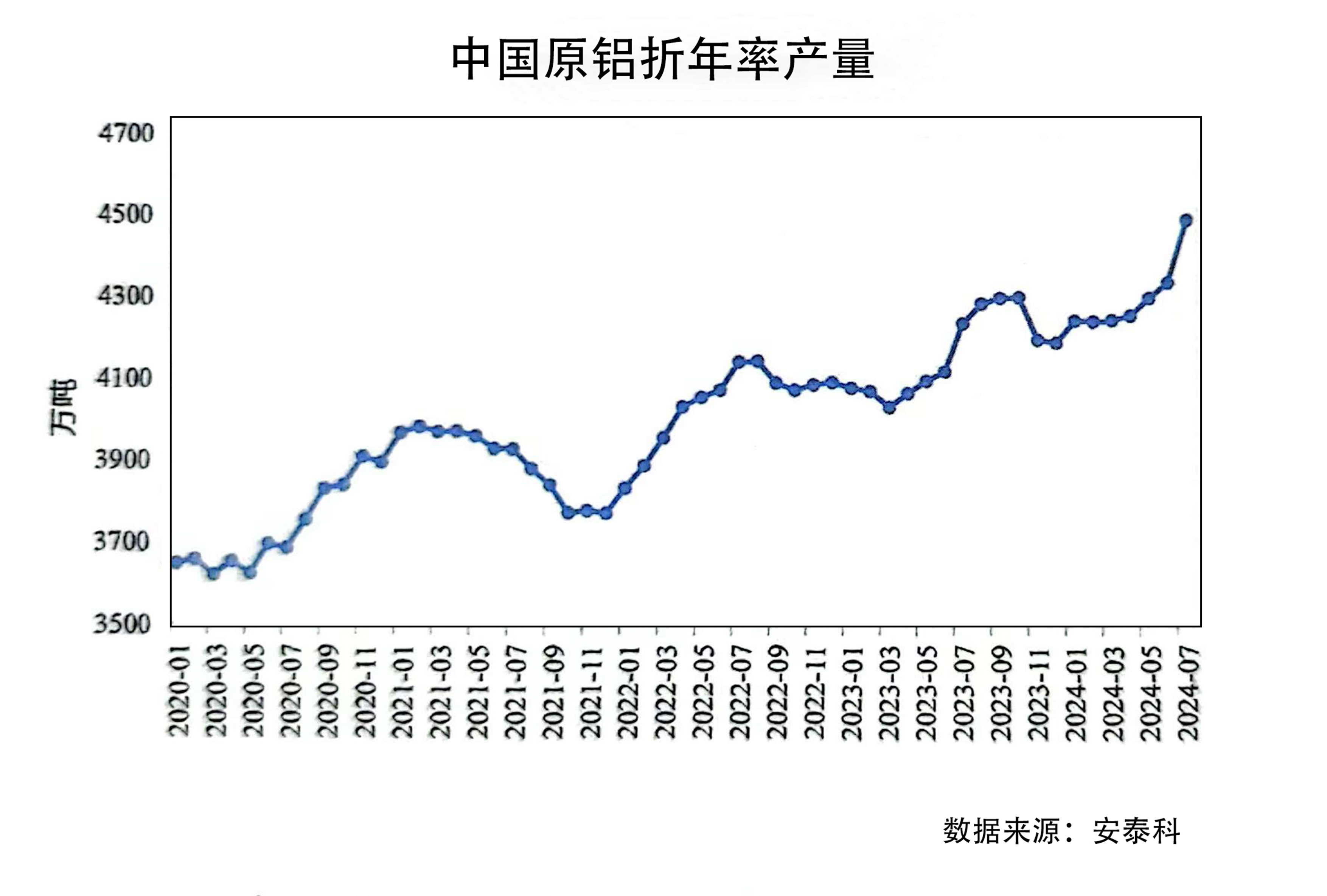 國(guó)內(nèi)外電解鋁生產(chǎn)(2024年7月)