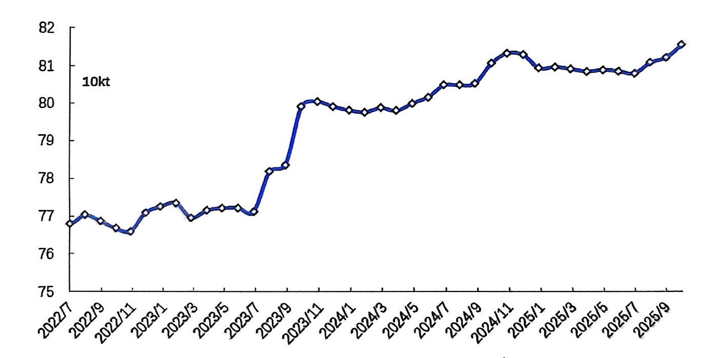 經(jīng)調(diào)整,10月份產(chǎn)量為376.6萬噸;預計11月份產(chǎn)量為364.2萬噸,同比增長0.8%,日均產(chǎn)量約12.16萬噸。
