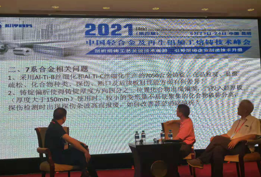 作為高端鋁合金晶粒細(xì)化劑的專(zhuān)業(yè)生產(chǎn)廠家,我司(峰越科技)以“淺析鋁合金晶粒細(xì)化劑的選用”為題作了報(bào)告發(fā)言,分享了我司多年來(lái)對(duì)鋁鈦硼及鋁鈦碳細(xì)化劑的大量試驗(yàn)、實(shí)用數(shù)據(jù),以及細(xì)化效果檢測(cè)方案等,并就我司鋁鈦碳細(xì)化劑目前可實(shí)現(xiàn)的細(xì)化效果及使用方法等方面,分別與云南鋁業(yè)、南南鋁業(yè)、西南鋁業(yè)等國(guó)內(nèi)鋁熔鑄加工領(lǐng)軍企業(yè)專(zhuān)家代表進(jìn)行了充分的互動(dòng)溝通。